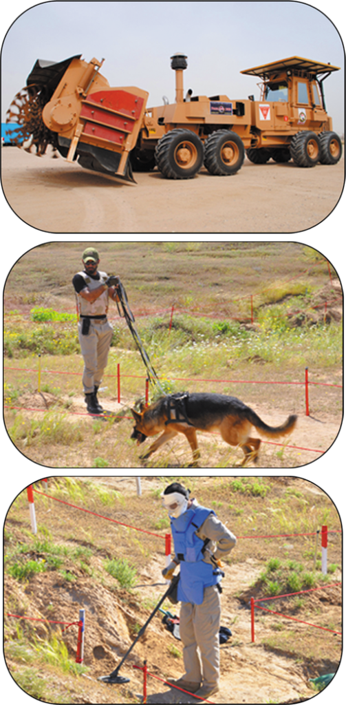 شركتنا حاصلة على التفويض العملياتي للأنشطة التالية : المسح التقني – ازالة الالغام بالطريقة اليدوية – ازالة الالغام بالطريقة الميكانيكية – تطهير ارض المعركة من الالغام فوق وتحت السطح – معالجة العبوات الناسفة والشراك الخداعية – التوعية من مخاطر الالغام – المسح والازالة تحت الماء