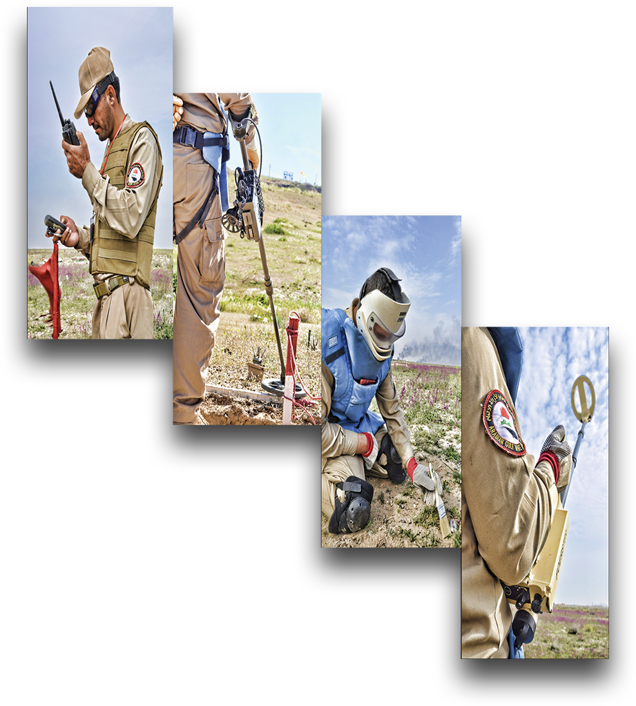 بدأت شركتنا بأعمال كشف الالغام وأزالتها في الاراضي العراقية عام 2006 وقد انجزت بنجاح عدة مشاريع في جنوب العراق لصالح الدولة العراقيـة لوزارتي النفـــط والنقـل ولعــدة شـــركات نفطيـة عالمية اخرى